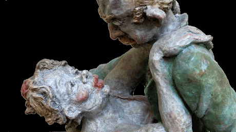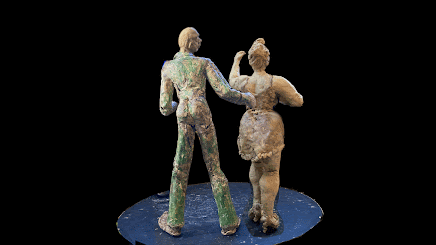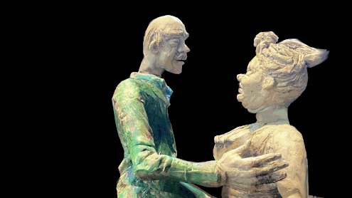 So this is a snippet for my animation, Tango, which is based on a series of my clay sculptures, featuring a middle-aged man who dances with a different girl in each of the sculptures. Here, she whispers to him, in her most sexy, throaty intonation, "I love your bald spot, your dwindling hair..."