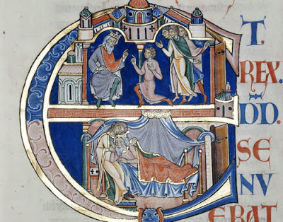 David's charge to Solomon, top, and David and Abishag, bottom 12th century illuminations from the Winchester BibleWinchester Cathedral Library, England