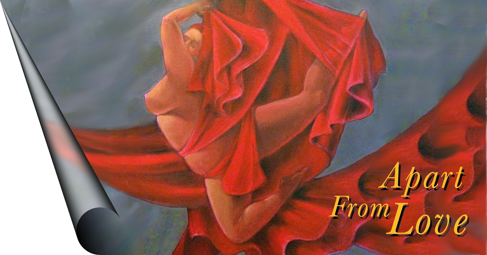 I did the preparatory work for them by drawing sketches of a nude model, who posed with a silky, red piece of fabric. Then I created a composition out of these sketches. I did a version of this arrangement in a different color scheme, in watercolor. You can see this version on my facebook page. Then I created the version presented here, in oil. Later, the panel on the right provided the inspiration for the cover of my novel, Apart From Love (available on Amazon in its paperback and Kindle editions.)