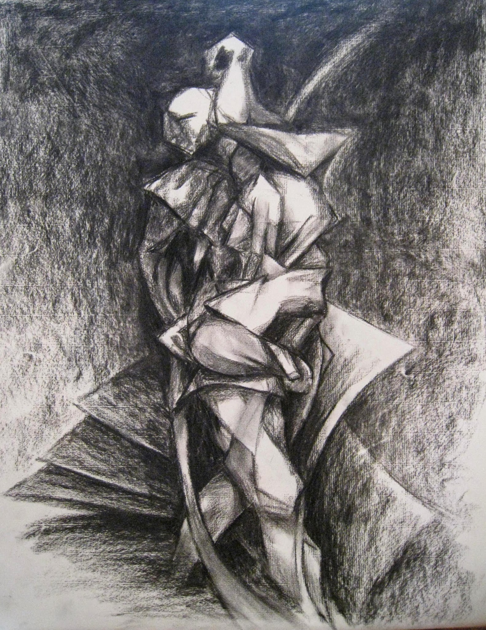 My charcoal drawing, where the two female figures build up the male figure. Can you discover them?