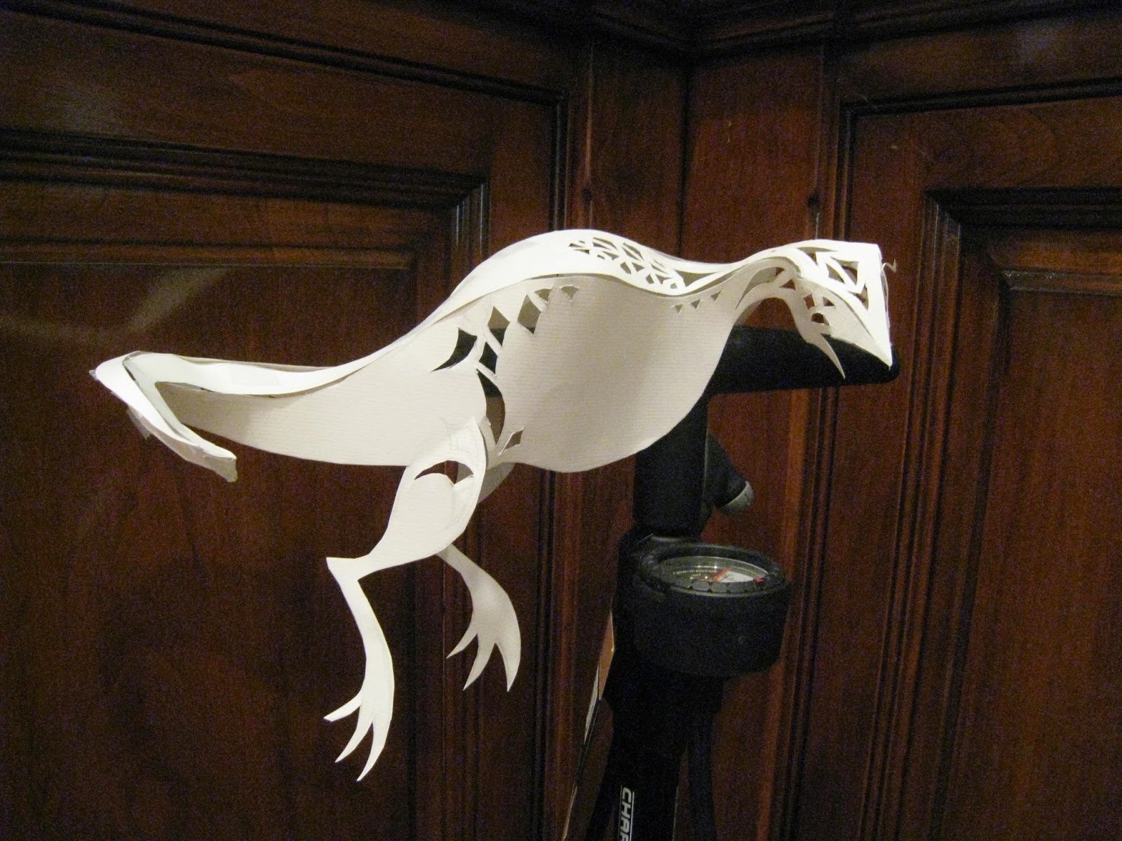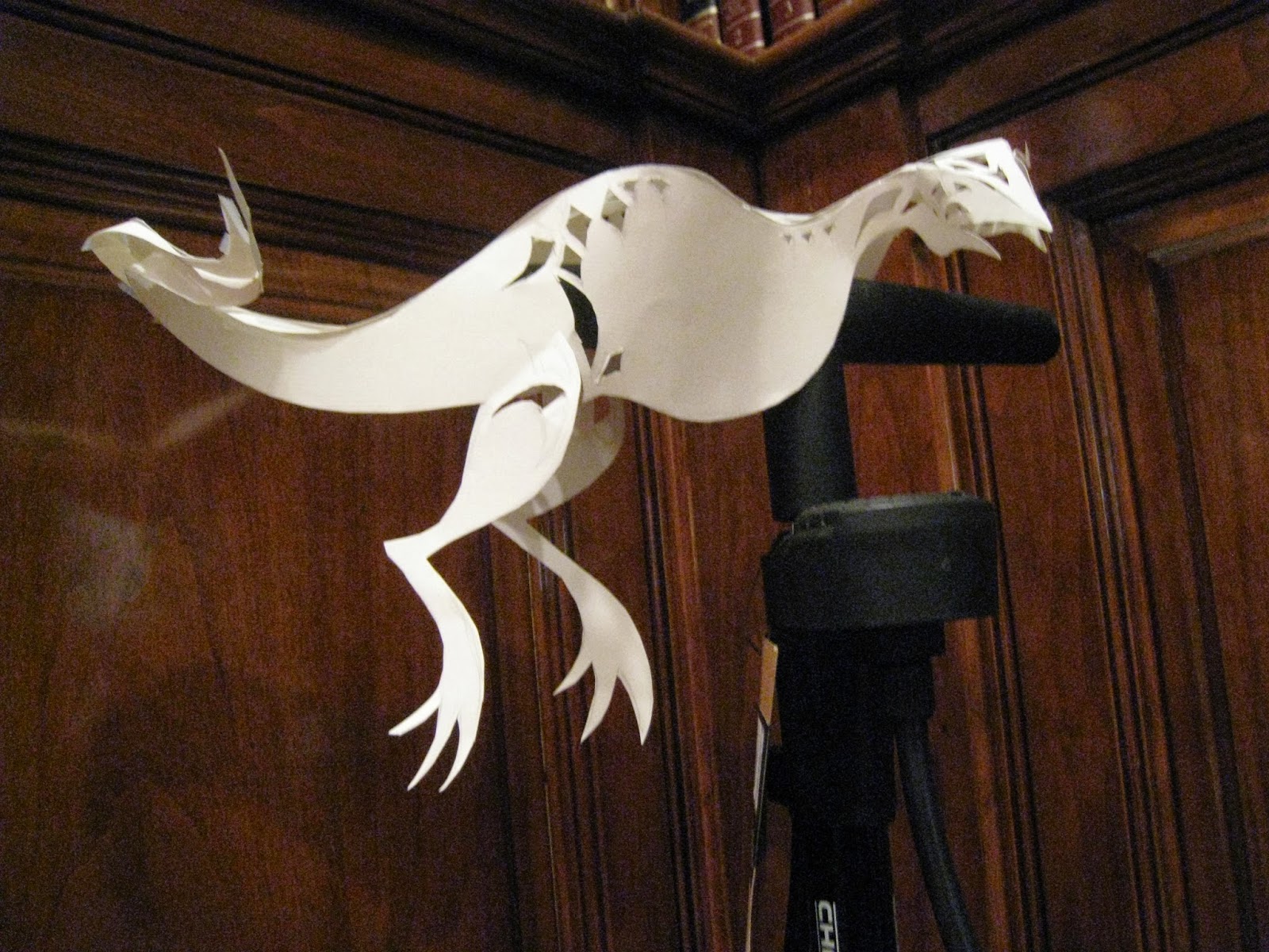 This is a quick paper cutout of a dragon, which I made yesterday, and let loose in my library... Who knows how high it will soar!