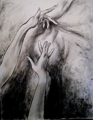 And here is a quick charcoal sketch I made of her hands dancing in the air. I attempted to impart this same feeling of nobility and inspiration that my text evokes: