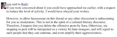 I asked Ruth to remove the offensive posts. They are still on that thread. And I'll keep you posted.... Let me know what you think.