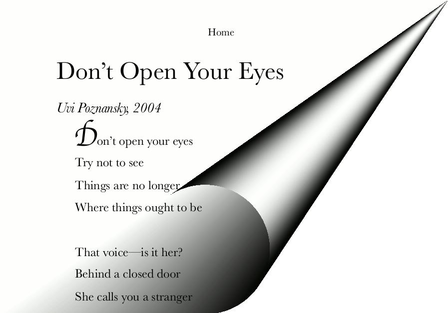 Note: this discussion is about the interior design of the paperback edition of Home. The choices I made here are similar to the ones I made for Apart From Love, so the environment is similar in its feel. The look of the Kindle edition is somewhat different, because of the limitations of the conversion tools. Therefore the first letter of each poem or story is not done with Kokonor font but rather with Baskerville.