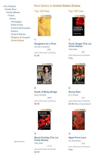 The book reached #3 in Kindle Store > Kindle eBooks > Fiction > Drama > United States: