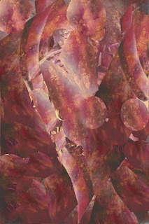 Using virtual 'brushes' of various sizes and bristle signatures, I painted the over the collage, so it became as textured and its lines as curvy as the front cover.