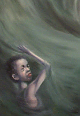Today, faced with news that Isaac Sparks Hurricane Katrina Memories, I pray for the people of New Orleans. Thinking about the wild, ferocious forces of nature, I am reminded of two small details in two of my canvases: Katrina and Earthquake, both of which took months of work, during which I was in awe learning about the survivors.