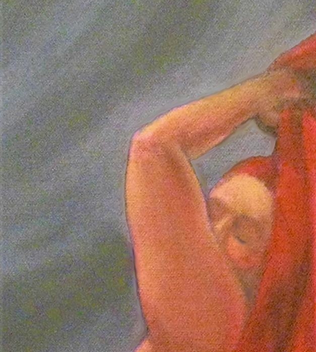 Then I turn my head—just a little—and take a peak over my shoulder. I glance real quick at that standalone mirror, which is facing away from me. And what do I see reflected there, if not something that’s, like, so strange to my eyes, so unusual, that it makes me want to blink, or wipe them in awe.Three squares of fuzzy wool are being held there, suspended in midair. Directly behind them hang three shadows, under which you can see three chubby old women, crinkling their noses—long, longer, longest. They’re straining their crossed, beady eyes with great focus, under three pairs of glasses, and clinking, clinking, clinking three pairs of knitting needles, like, all together now! And there, on the floor, you can see three balls of thick yarn chasing each other, and from time to time, getting tied in knots, every which way across them fat ankles. Anyway, at first glance them old women look kinda similar, like a rough, wrinkled copy of each other, what with those high arched, strange eyebrows. I pinch myself, but they’re still there—in the mirror as well as outside of it—no matter how long I try blinking and wiping my eyes. It takes me a while to tell them apart: The one sitting to the left, she’s toothless. The one in the middle has a pimple on her veined temple. And the one to the right, well, her nose isn’t only the longest, but also the knobbiest of all three.