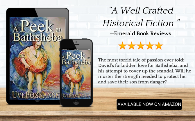 This is the second book in the David Chronicles (A Peek at Bathsheba) by Uvi Poznansky. The author weaves a fascinating tale where David is besotted by Bathsheba, the wife of one of his faithful soldiers, Uriah. Consumed by lust, he gets her pregnant, and in order to cover up the scandal, sends Uriah to his death. The story is crafted in such a way that it is told in David’s own words, so to speak. Poznansky gets inside David’s mind and offers the reader a unique perspective in his torment over his transgressions, and his desire for redemption. However, what we discover is his lack of will to redeem himself.