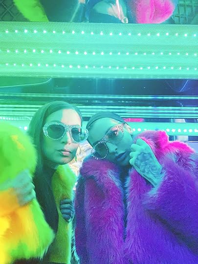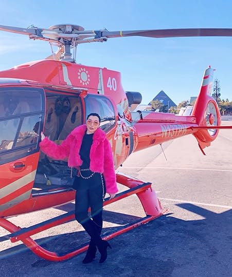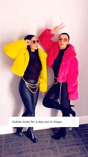 Two days later, we were in Las Vegas, running around a mall to buy looks for our helicopter ride. These matching neon faux furs made us feel Aspen-ready, and you have to wear aviators if you’re going in a helicopter!