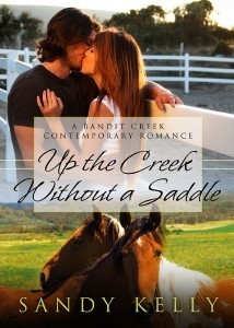 So while I’m waiting to reveal more news on the WIP, let me tell you about the next — and third last — Bandit Creek novella, UP THE CREEK WITHOUT A SADDLE by Sandy Kelly, a contemporary romance.