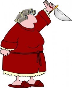 Years ago, one of my former co-workers decided it was time to tell her teenage children about menopause. She sat them down and when she was done telling them about the mood swings and weight gain and irritability and sugar cravings, her seventeen-year-old son asked, “Should we hide the knives now?”