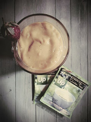 Karena saya penggila green tea latte dan smoothies, saya membuat dua jenis minuman itu dengan bahan dasar Up Green Tea, seperti di bawah ini: