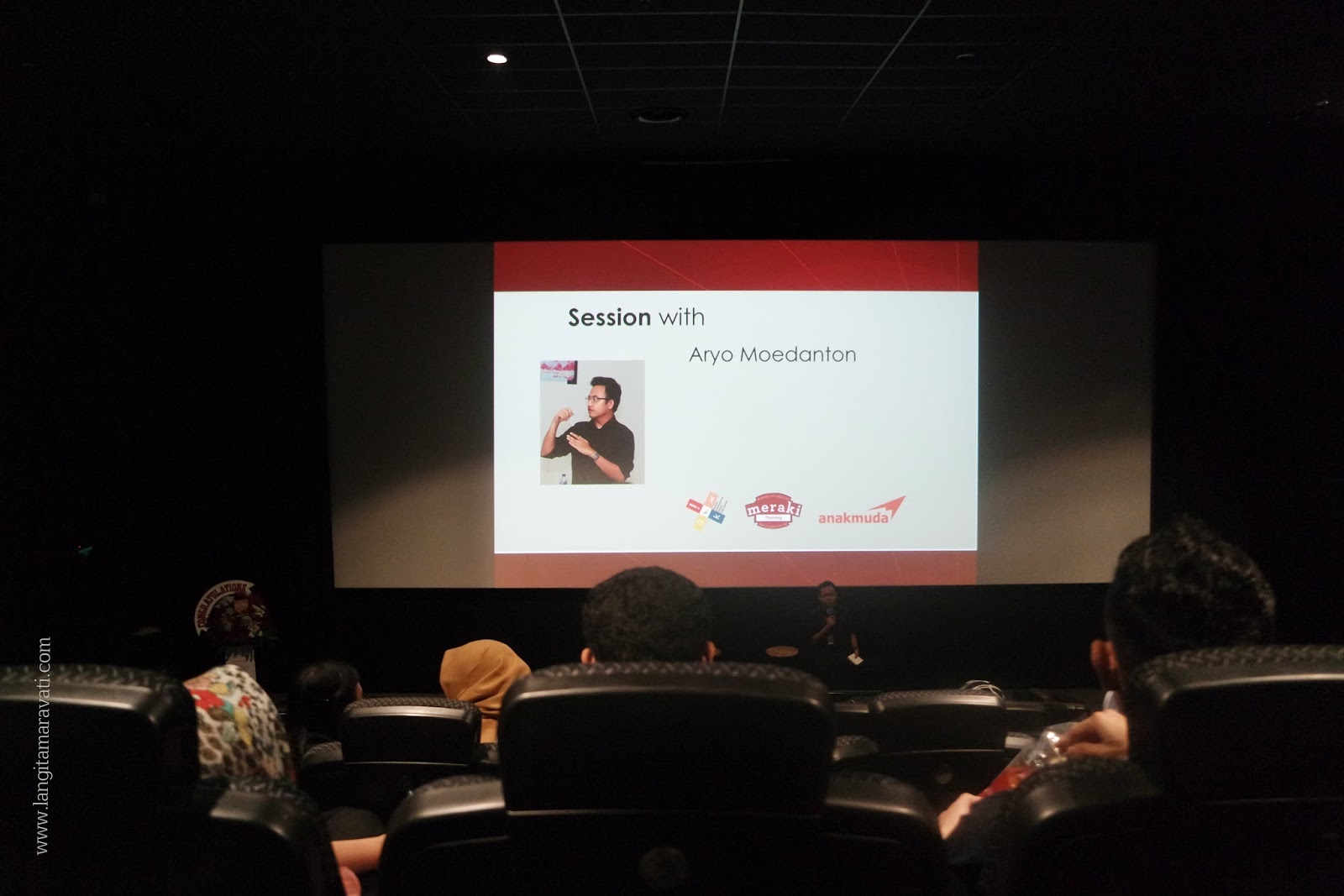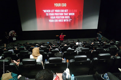 Acara launching buku ini memang terkesan agak tidak biasa. Jika biasanya acara-acara serupa diadakan di toko buku, kampus, Pusat Kegiatan Mahasiswa, atau sesekali di kafe, kali ini justru diadakan di bioskop. Tadinya saya mengira akan ada pemutaran film tentang kepemimpinan atau apa, ternyata tidak. Yang ada adalah presentasi Ibu Nenny yang ditayangkan di layar super besar. Kami para undangan duduk di kursi bioskop yang nyaman sambil makan popcorn. Pengalaman yang cukup unik.