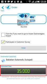 Kita bisa melihat estimated cost, jadi tidak usah deg-degan mengenai tarif. Kan ada tuh penumpang yang sebentar-sebentar melirik argo karena takut ongkosnya kurang (Oke, itu saya). Tapi sebentar, estimated cost ini artinya perkiraan karena argo taksi memakai dua perhitungan. Jika berjalan, tarif dihitung per KM, jika berhenti tarif dihitung per menit. Jadi kalau macet, kemungkinan nominal di estimated cost juga akan bertambah. (CMIIW)