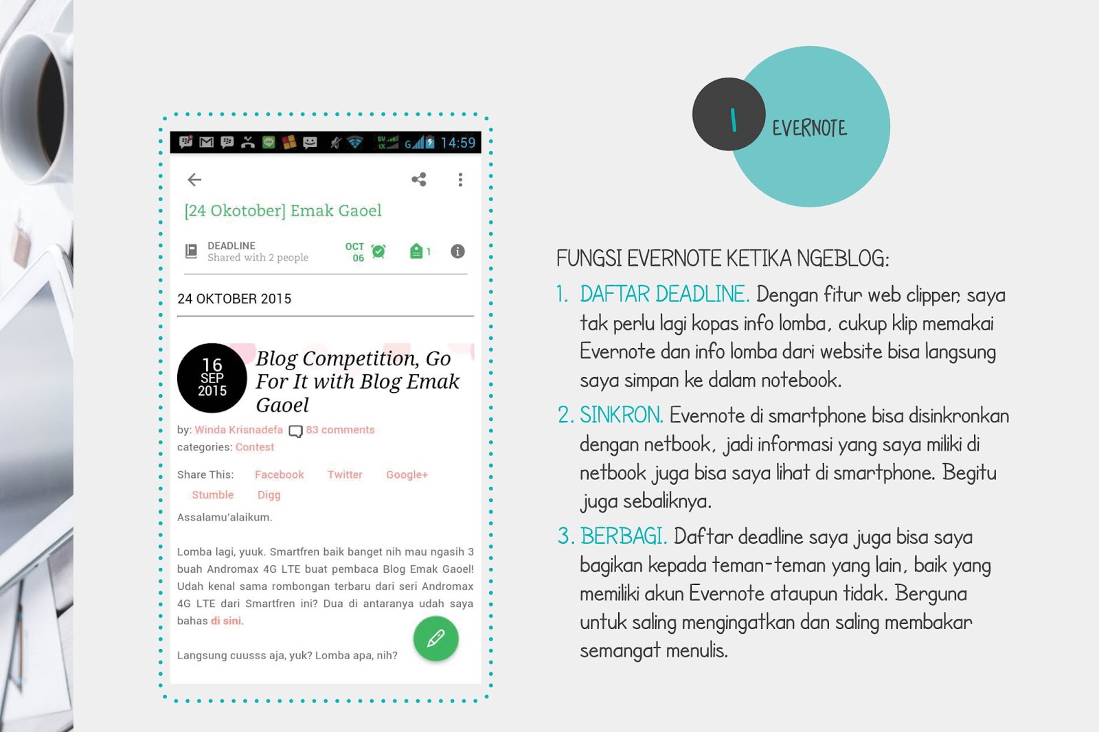 Jika sedang dikejar deadline layout-an, saya tidak pernah berani keluar kandang.6. Membuka Pintu BaruBanyak sekali peluang di dunia penulisan, salah satunya dengan ikut lomba. Kalau lomba menulis cerpen sih sudah saya lakukan sejak beberapa tahun lalu, sekarang sedang membuka pintu baru dengan ikut lomba blog. Seperti halnya mengelola keuangan, ikut lomba blog ini juga harus disikapi dengan bijaksana. Ada puluhan lomba blog setiap bulannya, tapi tidak semua saya ikuti. Saya harus mengukur kekuatan saya sendiri agar hasil yang saya terima pun maksimal.