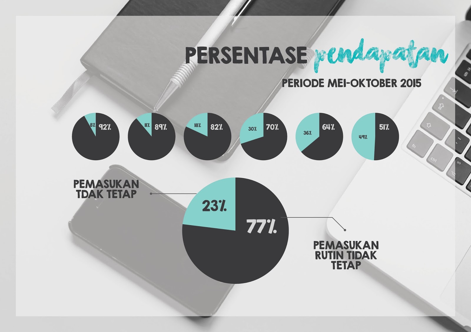OPTIMASI PENDAPATANFreelancer bukan karyawan yang menerima gaji setiap bulan. Kami hanya dibayar jika pekerjaan kami selesai. Sejak menjadi freelancer saya belajar menghargai setiap sumber daya yang saya keluarkan: pikiran, keahlian, tenaga, dan waktu. Kalau kata mantan atasan saya mah, I'll do my efforts, you'll do your efforts. Karena jujur saja, orang lain tidak akan menghargai keahlian yang kita miliki jika kita juga tidak melakukan hal yang sama. Ini yang saya lakukan untuk mengoptimasi pendapatan:1. Menetapkan TargetPendapatan rutin tidak tetap saya berasal dari layout buku. Sudah 4 bulan ini saya tersaruk-saruk agar bisa menyelesaikan paling sedikit 2 order layout-an. Targetnya sih 5, tapi itu akan membuat saya jadi zombie, jadi saya menurunkan target menjadi 3 layout-an per bulan.
