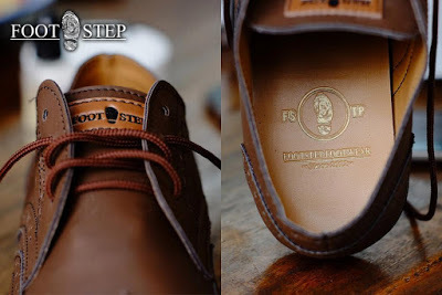 Detail sepatu FootstepSumber: FootstepSiapa bilang bahwa produk-produk brand lokal tidak sanggup bersaing dengan produk global? Kalau berbicara tentang kualitas, produk yang ditawarkan Footstep justru sangat bisa bersaing di kancah internasional. Sebelum memerkenalkan produk-produknya, saya ingin memberikan semacam testimoni dan sedikit alasan kenapa Footstep saya katakan sebagai produk lokal yang sanggup bersaing di kancah internasional: