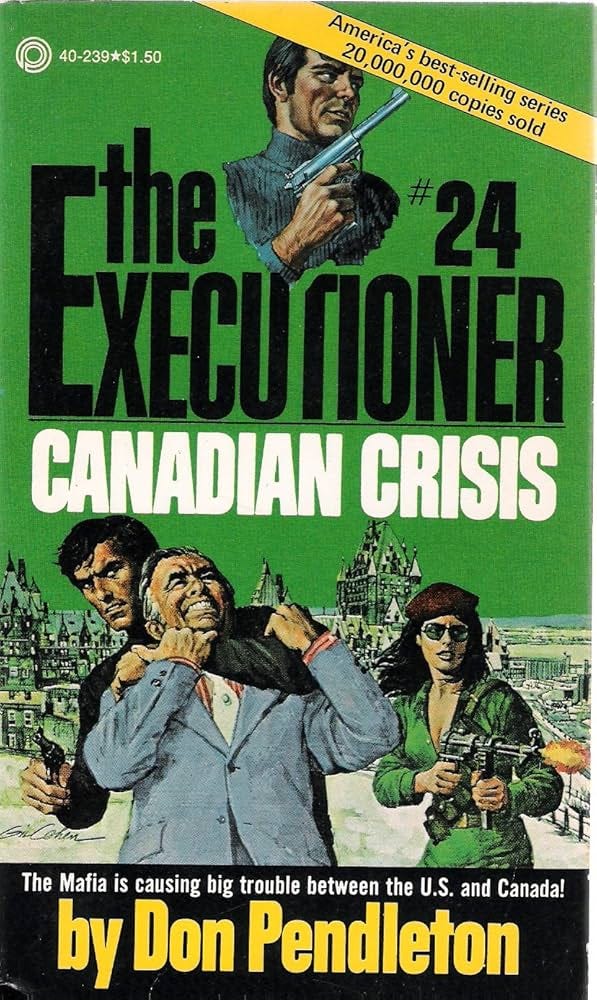 Mack Bolan in Canada fighting the Mafia with a French Canadian agent in tow. All the action you’d expect, but this time with occasional references to Quebecois separatists. Fun.