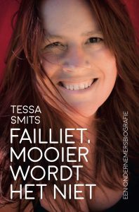 I’m Tessa Smits, 41 years old, artist and writer. I wasn’t always an artist. I worked as an interim marketer for years and started my own online company. After years of working 24/7 my company went bankrupt, I lost everything; my house, work, money. Instead of feeling depressed I felt relieved. There was no more fear because there was nothing left to lose, I decided to take this opportunity and follow my passion for making art and became a full-time artist. Years later I wrote a book about this period: “Failliet, mooier wordt het niet.”.