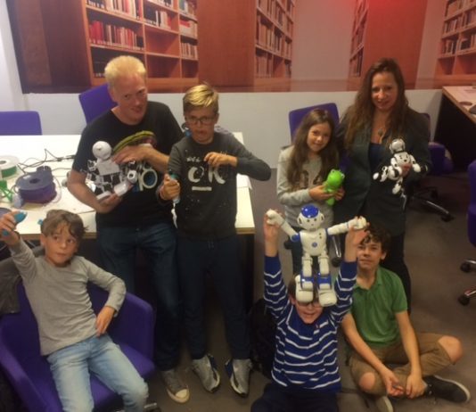 Bij aankomst op VondelCS, laat Manon, Co-organiser van deze Wonder Wednesday, mij trots en bevlogen, alle tech, flex- en netwerkmogelijkheden zien die er maar beschikbaar zijn. Ook haalt ze een Underwood uit de kast en koppelt de stokoude schrijfmachine aan haar laptop als tekstverwerker. Still functional! En ik zie onze ‘Xylofoon robot’ – for non-geeks’ sake just judging a robot by its cover – waarmee je kunt leren programmeren, op een tafel achteraf staan, in het Permanent Future Lab Amsterdam.