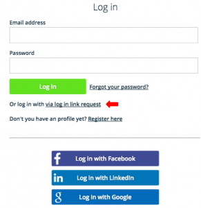 It’s easy! Just select the option ‘log in link request’, put your e-mail there, and you will receive an e-mail with a link. When you click that magical link, you will be already logged in in Seats2meet!