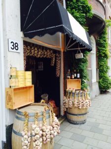 After my meeting @Gastvrij Rotterdam I took the metro back to Rotterdam Central station. My metro was ending in Denhaag and I decided to stay in the metro and work the rest of the day at the beach. When I arrived in Denhaag I took a bike to my favorite bar at a quiet place on the beach. While biking (with Spotify and google maps on the max) my phone decided to die. Shit… I wasn’t sure how to bike anymore. I decided to ask a guy on the street to help me out. This guy, an older man with a funny round glass and a straw hat, showed me the way. He was sitting in front of a small shop full of garlic. I asked him about the shop and he explained to me he was in love with France and imported his favorite food from the region Gers. *SERENDIPITY MOMENT* I was flab-ber-gas-ted, my mom just told me the week before that she will start a bed and breakfast in exactly this region, how cool?! Of course, I had to try all different things and this older man explained me everything about how to use garlic and showed me his best wines and cheeses. This is his shop.