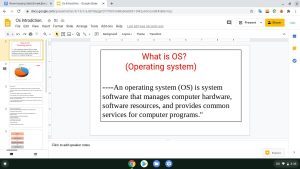 I explained the basic idea of Operating system, not only computer operating system but also mobile, watch OS and IOT. Discussed market share of OS in a pie chart, however that was a little backdated version of my slides. We also discussed the history of OS, features of OS , how OS gets connected with hardware. The presentation also shows how Karnel can create communications between hardware and software. Showed it by picture to give a better visualization.
