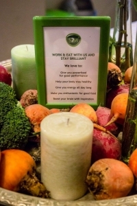 ‘Zeker! Een mooi voorbeeld was de catering van het evenement rondom de lancering van de nieuwe software van Seats2meet.com op 26 oktober jl. Green Passion heeft daar met een gelegenheidsteam van andere food passionista’s, geheel in S2M-stijl dus, een prachtig buffet neergezet. Het doel was echt een boodschap over te brengen met het buffet, een echte ‘food beleving’ aan te bieden. Alle gerechten hadden namen, waarin de kracht van dat specifieke gerecht tot uiting kwam. Zo hadden we ‘Power to the Pieper’ (frittata met aardappel) en Brilliant with Broccoli (quiche), maar ook Happy Hot Soup (gember-pompoensoep) en Popey pesto met spinazie. De aankleding was heel herfstig, om de seizoensgebondenheid van de producten te benadrukken.’