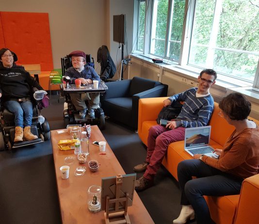 Daarom dromen ook wij groot. Wij dromen zo groot, dat we een FLOOR academy voor ons zien. Een online en offline plek waar verbinding ontstaat. Want er zijn al genoeg eilandjes. Genoeg initiatieven voor en door deze doelgroep, ieder weer met een eigen achterban. Ons plan is deze initiatieven zoveel mogelijk te verbinden en samen te werken. En daarom vergaderen we af en toe bij Seets2meet. Wij, projectleider Gigi Dingler, Tim Kroesbergen, Maarten Dik, Liann Daalder, Britt Gerhardt. Jongeren die zelf allemaal een beperking hebben maar zich niet laten beperken. Die dingen hebben bereikt en vastbesloten zijn door te geven aan andere jongeren om ook groots te dromen en stappen te zetten richting die droom.