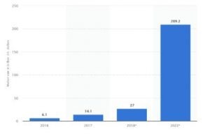 Another technological trend worth to be discussed is Virtual reality (VR) and Augmented Reality (AR). Over recent years demand in development of these products is also getting acceleration. It went far more that only gaming. VR suggests agile solutions for business types like travel agencies, real estate related companies, medical simulations applied for healing processes and many others. For period of 2016-2022 year Statista draws promising forecast for size of VR and AR market worldwide (in billions US dollars):