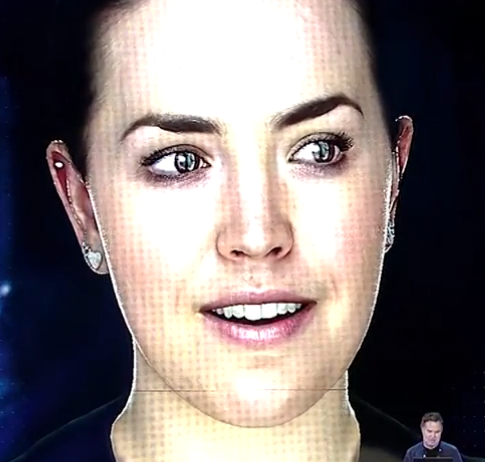 Cross introduces us to Rachel. A 3d avatar which does not only looks like a human but also talks and reacts as a human. The company which built her fitted her with a virtual nervous system. That makes her entirely emotional responsive en can humanly connect with you. Rachel can laugh, talk, she recognises emotions and can adequately respond to them. To make her talk in a natural way she even has lungs.