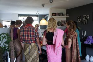 De eerste reis van BAPAHO ging naar Suriname. We hebben Bara en Roti leren maken en wat meer over de geschiedenis en gewoontes van Suriname geleerd. Ook had onze host Silla veel verhalen over haar eigen ervaringen in Suriname en Nederland en mochten we ons allemaal hele mooi aankleden!