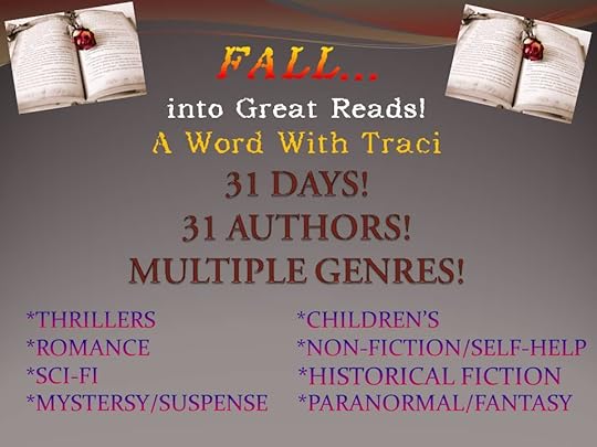 I’m honored, delighted, thrilled, and pretty chuffed…and over the moon to be included in this FALL INTO GREAT READS blog tour for the month of October. Please join me and 30 other talented writers in celebrating the wonders of the written word. #AWWTblog