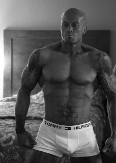 Romance cover model John Quinlan looks so hot in this pic, I think I'm gonna write him into an episode of Carmine Club. I already have a title for it: Come to Bed. (chuckle) Maybe we can all drop by his Facebook fan page and ask if he'd prefer to be in an episode exploring the female fantasy of being with two men at once, or if the idea of being dominated by a woman floats his boat? (He'll kill me if you do!) But I'm inspired, not to mention feeling some serious brand loyalty for Tommy Hilfiger at the moment.