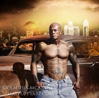 http://facebook.com/phatpuppyartistEnjoy some more gorgeousness from romance cover model John Quinlan, spiced up by delicious artwork by Claudia McKinney at http://facebook.com/phatpuppyartist Makes you wanna write a post-apocalyptic romance, doesn't it?