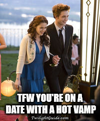 Brownie points for the early reference to Bleach, not so much brownie points for telling us that such-and-so character or situation is like such-and-so famous movie, TV show, or book. Like telling us a character is dressed up “like Bella at prom,” but I’ve actually never read or seen Twilight, so I don’t know what Bella at the prom looks like. Apparently, it’s this.