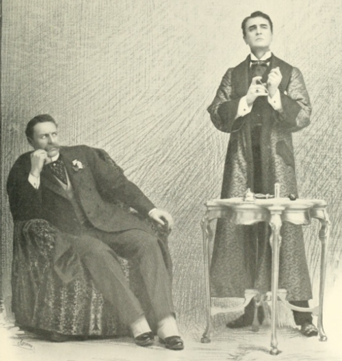 I absolutely love this photo, which depicts the immortal William Gillette as Sherlock Holmes in a dramatic mood, while Watson looks, frankly, horrified. I could laugh at it for hours.