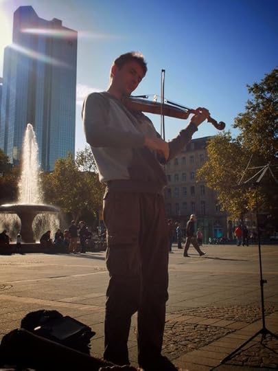 I walk along a path that cuts through a park dotted with sculptures. People are lying on the tall grass, in the sun. I mean, I'm so used to avoiding the sun that seeing this still fills me with wonder. I end up walking to the Alter Oper (opera house), where this lone guy is playing violin for an appreciative crowd. I snap a picture of him, but he turns away, so I just shrug and drop a EU1 coin into his collection box.