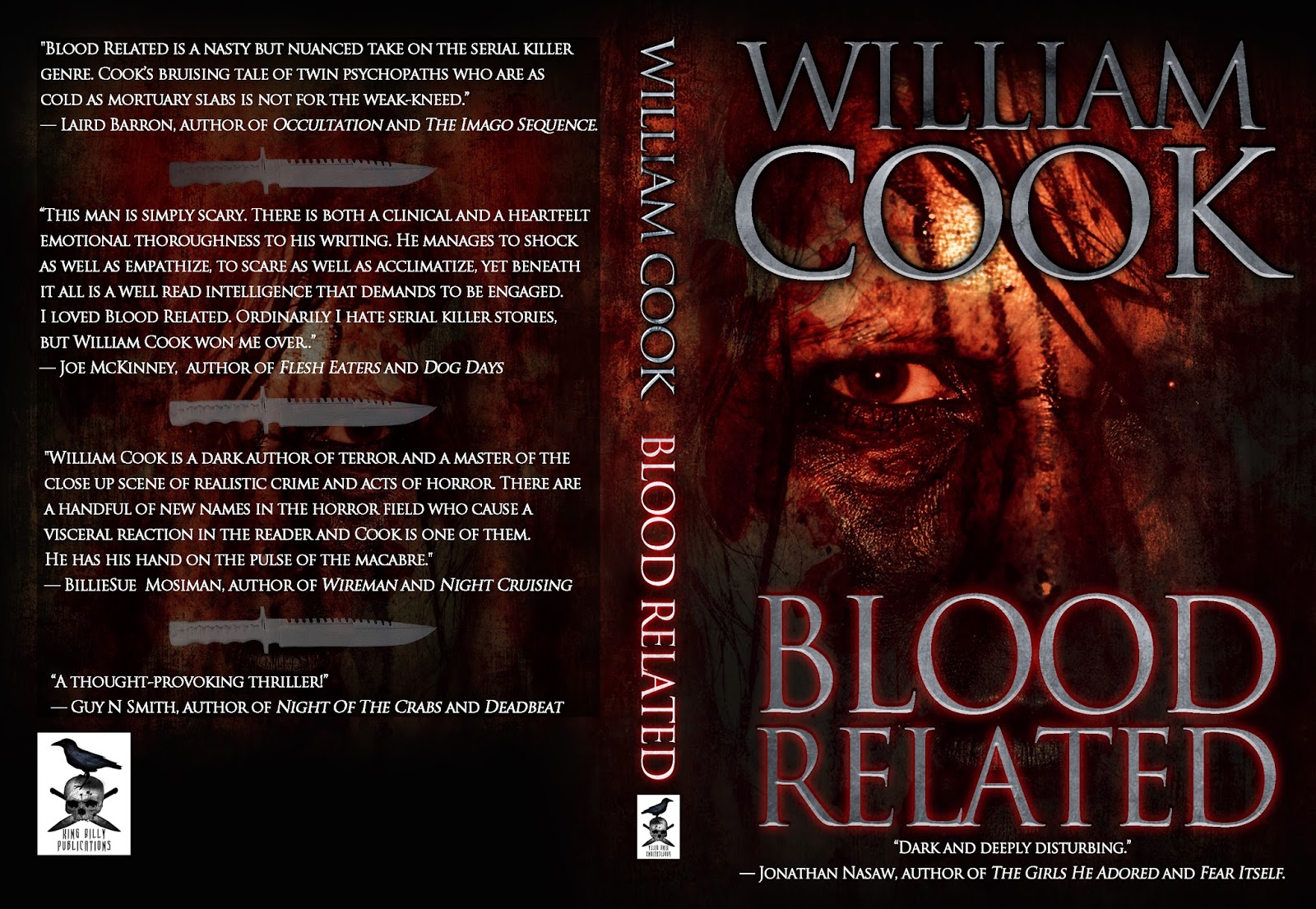 I have had the good fortune to receive some fantastic blurbs/reviews from some of the leading authors in the Horror and Thriller genres. This is what Graham Masterton, best-selling author of The Manitou and The House That Jack Built, says about Blood Related: "William Cook tells a gruesome story with a sense of authenticity that makes you question with considerable unease if it really is fiction, after all." Joe McKinney is another best-selling author who read Blood Related and offered this fantastic blurb: "This man is simply scary. There is both a clinical thoroughness and a heartfelt emotional thoroughness to his writing. He manages to shock as well as empathize, to scare as well as acclimatize, yet beneath it all is a well read intelligence that demands to be engaged. I loved Blood Related. Ordinarily I hate serial killer stories, but William Cook won me over. He is a unique and innovative talent."