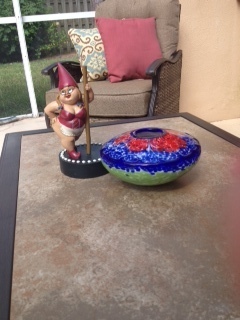 An oven mitt, a fake tree frog and Myrtie…Oh my!