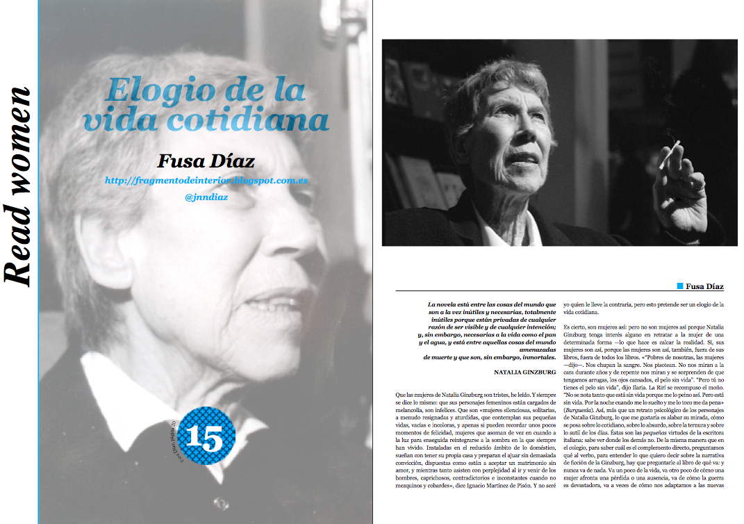 Que las mujeres de Natalia Ginzburg son tristes, he leído. Y siempre se dice lo mismo: que sus personajes femeninos están cargados de melancolía, son infelices. Que son «mujeres silenciosas, solitarias, a menudo resignadas y aturdidas, que contemplan sus pequeñas vidas, vacías e incoloras, y apenas si pueden recordar unos pocos momentos de felicidad, mujeres que asoman de vez en cuando a la luz para enseguida reintegrarse a la sombra en la que siempre han vivido. Instaladas en el reducido ámbito de lo doméstico, sueñan con tener su propia casa y preparan el ajuar sin demasiada convicción, dispuestas como están a aceptar un matrimonio sin amor, y mientras tanto asisten con perplejidad al ir y venir de los hombres, caprichosos, contradictorios e inconstantes cuando no mezquinos y cobardes», dice Ignacio Martínez de Pisón. Y no seré yo quien le lleve la contraria, pero esto pretende ser un elogio de la vida cotidiana.Es cierto, son mujeres así: pero no son mujeres así porque Natalia Ginzburg tenga interés alguno en retratar a la mujer de una determinada forma —lo que hace es calcar la realidad. Sí, sus mujeres son así, porque las mujeres son así, también, fuera de sus libros, fuera de todos los libros. «"Pobres de nosotras, las mujeres —dijo—. Nos chupan la sangre. Nos pisotean. No nos miran a la cara durante años y de repente nos miran y se sorprenden de que tengamos arrugas, los ojos cansados, el pelo sin vida". "Pero tú no tienes el pelo sin vida", dijo Ilaria. La Rirí se recompuso el moño. "No se nota tanto que está sin vida porque me lo peino así. Pero está sin vida. Por la noche cuando me lo suelto y me lo toco me da pena» (Burguesía). Así, más que un retrato psicológico de los personajes de Natalia Ginzburg, lo que me gustaría es alabar su mirada, cómo se posa sobre lo cotidiano, sobre lo absurdo, sobre la ternura y sobre lo sutil de los días. Éstas son las pequeñas virtudes de la escritora italiana: sabe ver donde los demás no. De la misma manera que en el colegio, para saber cuál es el complemento directo, preguntamos qué al verbo, para entender lo que quiero decir sobre la narrativa de ficción de la Ginzburg, hay que preguntarle al libro de qué va: y nunca va de nada. Va un poco de la vida, va otro poco de cómo una mujer afronta una pérdida o una ausencia, va de cómo la guerra es devastadora, va a veces de cómo nos adaptamos a las nuevas realidades. Pero, en esencia, va de todo y de nada —un pueblo, una ciudad, mujeres, hombres, niños. No hay nada que sea más importante o menos, no ocurren grandes acontecimientos: todo es sobre lo invisible del día a día, las bromas sencillas de la vida familiar, lo íntimo de una mujer, pero también la tierna brusquedad del hombre. Natalia Ginzburg posee el don de ser indulgente con la pena, con la rutina, con la mediocridad. Es tan misericordiosa con el desorden y lo inútil, que lo convierte en extraordinario. Por eso se cierran los libros con la sensación de que nos han contado cualquier cosa y, en el fondo, está hueca la tal cosa —por eso el personaje se queda. No le importa que no haya un gran estruendo en medio de la novela que lo remueva todo y recoloque. No le importa lo lineal en la trama o en el personaje: todo lo que cuenta es un círculo que no se cierra nunca y que sigue girando incansable incluso sobre lo no descrito; es una enumeración de razones para seguir vivo.«Me caso con él por las siguientes razones, que he examinado atentamente una por una. Porque quiero tener hijos. Porque ya tengo treinta y tres años. Para dar una alegría a mi padre. Porque podré seguir ocupándome de mi casa hasta que mis hermanos crezcan, ya que mi casa y la de los Mazzeta sólo se encuentran separadas por un patio. Porque a nadie se le ha ocurrido nunca casarse conmigo y a Mazzeta sí. Porque es una buena persona. Siempre que mi padre le ha pedido dinero prestado se lo ha dado y nunca se ha enfadado porque no se lo devolviera, sino que ha seguido viniendo de vez en cuando a nuestra casa después de cenar a jugar a la escoba y a charlar con mi padre, y eso que charlar con él no es nada fácil, porque hay que repetirle las cosas un montón de veces. Porque soy pobre. Cuando me case no seré rica, pero seré menos pobre. Porque aquí, en Luco, llevo una vida muy dura y pienso, no sé si me equivoco, que cuando esté casada será más liviana.Nino Mazzeta se casa conmigo por las siguientes razones, que me ha enumerado una por una. Porque no le parezco fea. Porque soy de costumbres sencillas. Porque no le intimido, aunque yo sea licenciada en filología y él sólo haya estudiado hasta quinto de Básica. Su mujer muerta le intimidaba, aunque ella sólo hubiera estudiado hasta tercero de Básica. Era de carácter pendenciero y no fueron nada felices. Porque toco la flauta. Porque cocino mal y a él le gusta comer bien, pero piensa que con un libro de cocina aprenderé enseguida. Porque me conoce desde que era pequeña. Porque conoce bien a mi familia.También yo le conozco desde que era pequeña, pero a mí eso no me agrada demasiado. Me parece que tengo el futuro pegado a las suelas de los zapatos» (La casa y la ciudad).Así son, también, sus ensayos. Diría que el personaje femenino de Natalia Ginzburg no es triste, sino imperfecto y humano; de la misma manera que diría que el yo de Natalia Ginzburg, el de sus artículos y ensayos y relatos biográficos, es imperfecto y deliciosamente humano. De los escritores uno siempre espera, terrible error, que sepan de todo, y que sepan mucho. Se esperan grandes titulares, cierres con broche de oro, respuestas ingeniosas, alguna que otra cita y, a poder ser, una frase contundente que hable de la escritura, del proceso creativo. Otra de las pequeñas virtudes de la Ginzburg es precisamente que no necesita alardear. Y no sólo eso, sino que juega con las cartas descubiertas: nos muestra todas sus debilidades, sus carencias culturales, sus dudas,