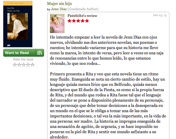 Al cerrar el libro, sólo desearía que los ministros y legisladores tomasen sus medidas desde la misma empatía, compresión y respeto a la libertad de las mujeres con las que Jenn Díaz escribe sus novelas.