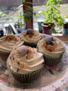 Easter Cupcakes: Carrot Cake with Little Toasted Coconut Nests