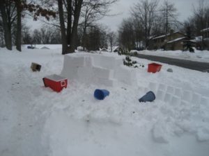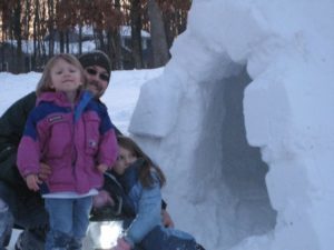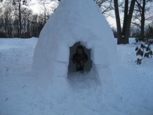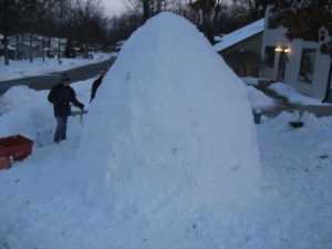 10 years ago–with this kind of snow–we all made a real igloo. It took all day. The grad students helped, and the igloo lasted till April.