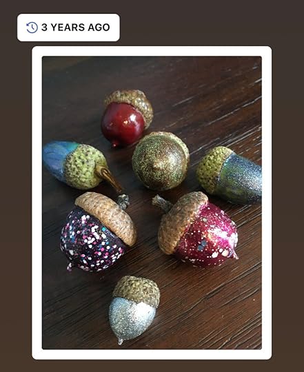For the past decade, I’ve collected the fallen acorns every September to paint in cheerful colors as an autumn craft. We’d gather all the old nail polish bottles and enjoy painting the acorns. We’d always display our acorns in a glass bowl.