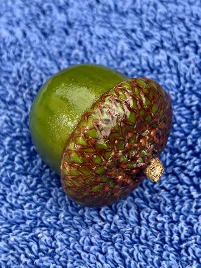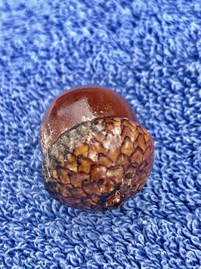 In fact, as I walk across campus this morning, I stoop low to scoop up acorns on the path from the large oak trees lining my walk. Another professor spies me holding my bag of acorns and says, delighted, “You’re painting acorns again!”