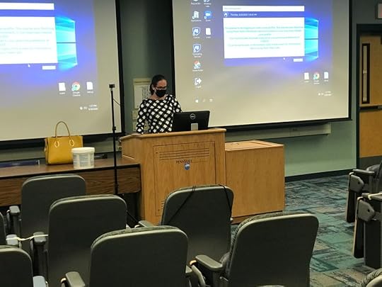 Then, I arrived to a mostly empty campus and secured my PPE from the English department’s (also empty) mailroom. Then, I arrived to my classroom, wiped down the computer, microphone, and surfaces, and then welcomed students into their socially-distanced seat. They could take a disinfectant wipe and wipe down their own desks if they wished. Everyone wore masks. Everyone could hear one another. Everyone participated joyfully. Then, everyone filed out in an orderly way, sanitized their hands, and went on with their day.