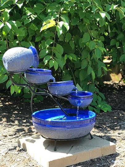 This bird bath has brought joy to the garden. When the sun rises, the solar-powered fountain starts and pours water down into the bowl. It’s a delightful tinkling sound.