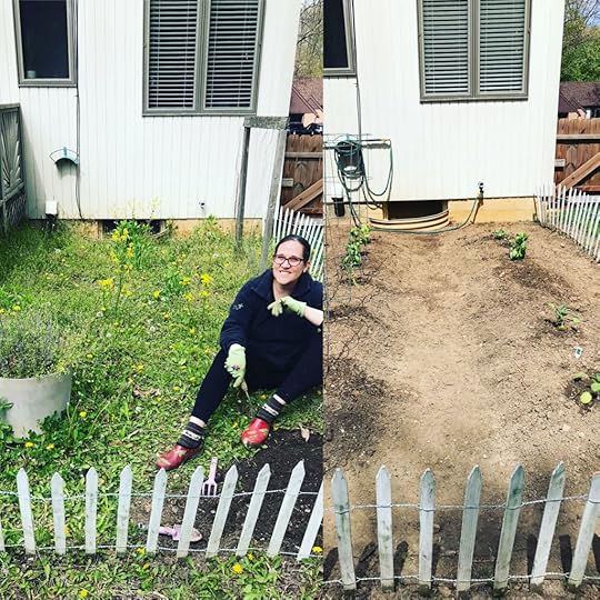 I weeded for DAYS and DAYS! And I loved it. I now have a beautiful little backyard garden with cucumber, beans, tomatoes, eggplant, basil, Brussels sprouts, peppers, dill, parsley, and chives.